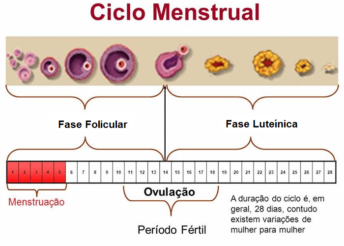 Num ciclo menstrual normal de 28 dias, a primeira fase inicia-se no primeiro dia da menstruação até ao 14º dia.