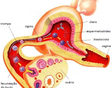 Desde o primeiro dia do período até ao 14º dia aproximadamente, o corpo feminino é inundado pelos estrogênios. Durante esta fase, o óvulo acaba de amadurecer e é expulso do ovário. O óvulo começa a deslocar-se ao longo das trompas, que o conduz até ao útero. É nas trompas que o espermatozoide encontra e fecunda o óvulo. Um óvulo fertilizado começa imediatamente o processo de embriogênese (formação do embrião). O embrião em desenvolvimento leva cerca de três dias para alcançar o útero e mais três dias até implantar-se no endométrio.