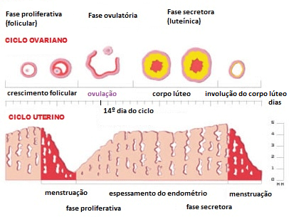 O ciclo menstrual é composto de 3 fases: Fase Proliferativa ou Folicular, Fase ovulatória e Fase Secretora ou Luteínica.