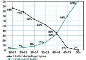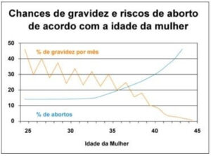Com o processo de envelhecimento, e consequente perda de qualidade dos óvulos, a chance de gravidez diminui, antes mesmo da mulher entrar na menopausa, portanto: